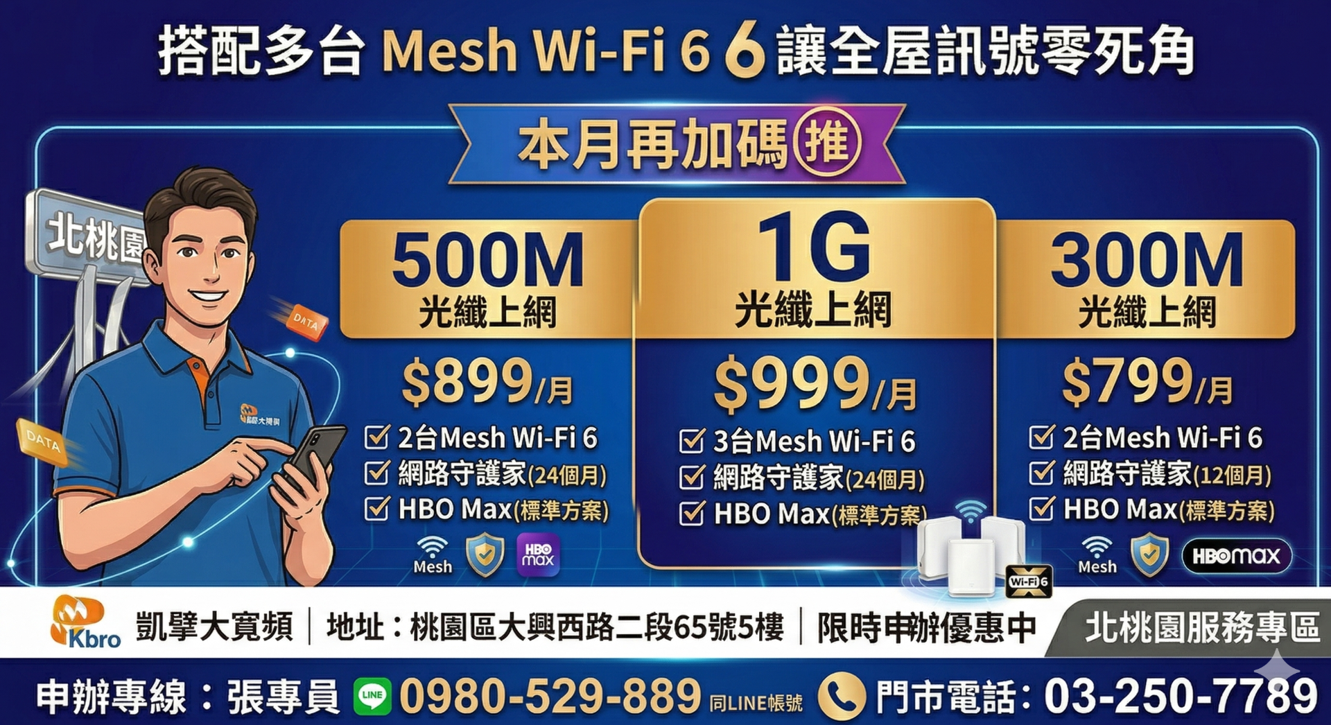 免費升級三台Mesh Wi-Fi6, 享有4K Android智慧電視盒 獨享HBO電影套餐
